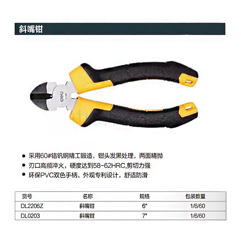 得力   斜嘴鉗(包膠)--6寸